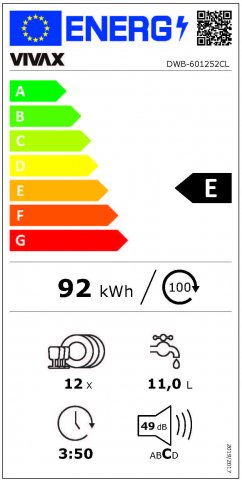 Vivax DWB601252CL teljesen integrálható mosogatógép, 12 teríték, E